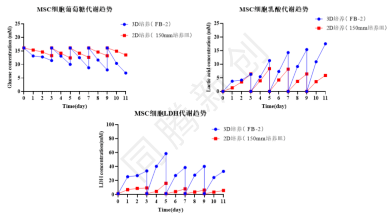 图7. Standard CD 培养基进行UC-MSC的2D和3D培养细胞代谢比较
