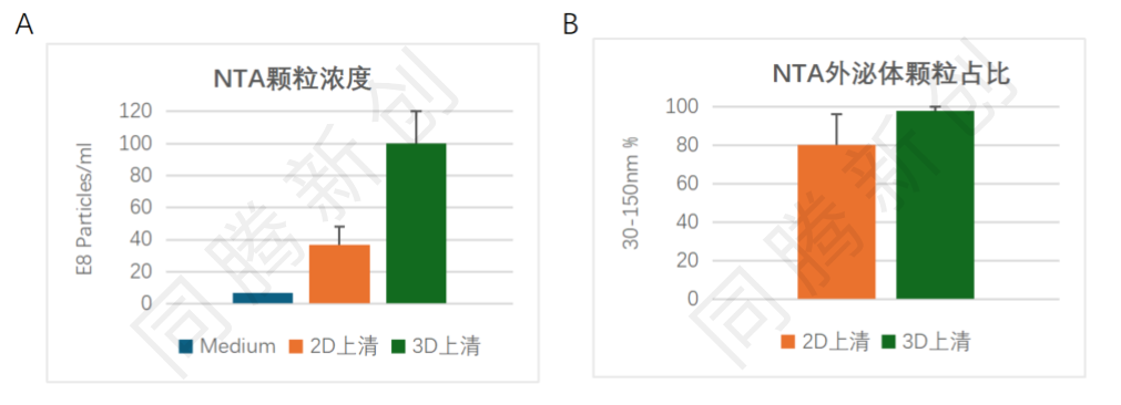 图8. Standard CD 培养基进行UC-MSC的2D和3D培养收获培养上清中外泌体颗粒浓度和纯度比较