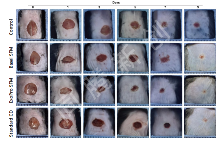 图12. Standard CD 培养基制备的3D UC-MSC外泌体能促进小鼠皮肤损伤愈合