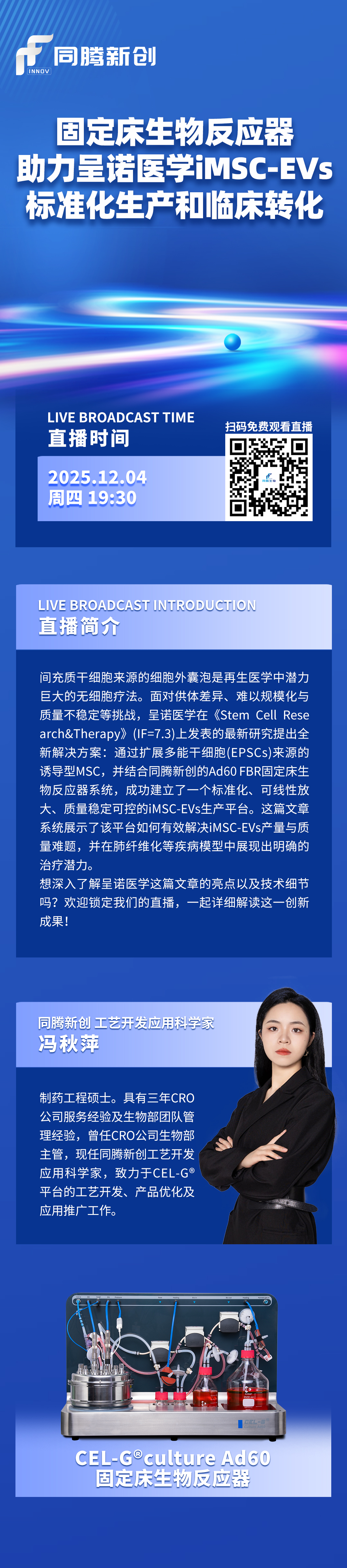 主题名称:固定床生物反应器助力呈诺医学iMSC-EVs标准化生产和临床转化!